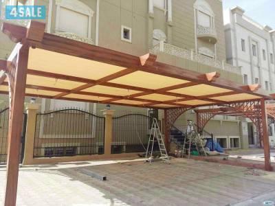 تركيب مظلات حديد بشكل خشبى ومظلات خام استرالى و اسبانى وكيربى مخازن و تركيب بلاستيك ضد ابواب نقشه